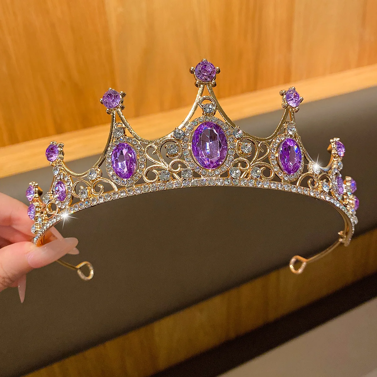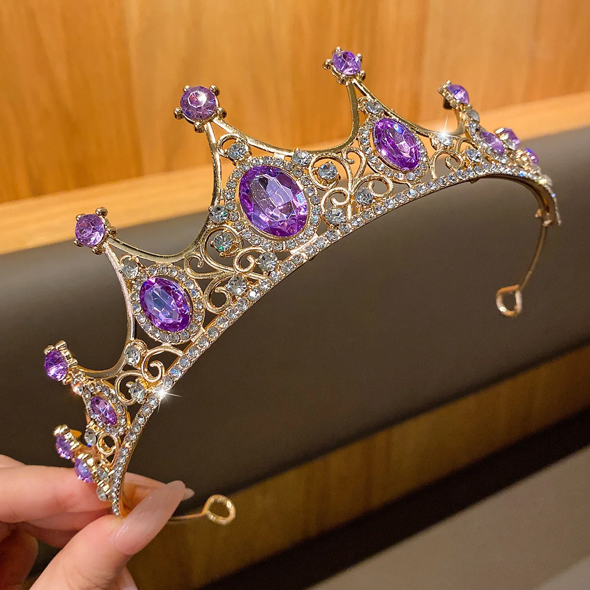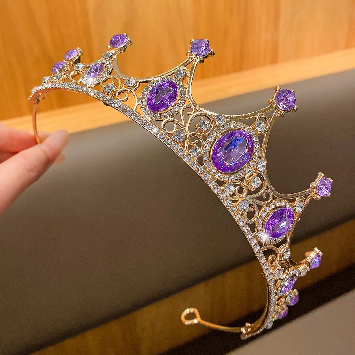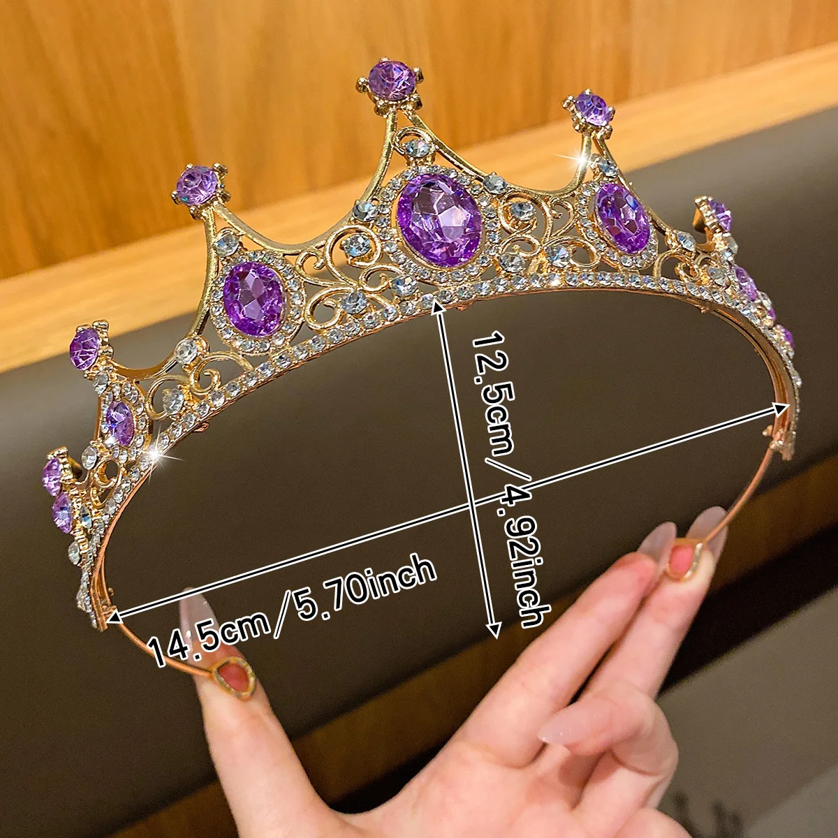1 purple rhinestone alloy crown, sweet and fashionable, suitable for birthdays and performances as a hair accessory